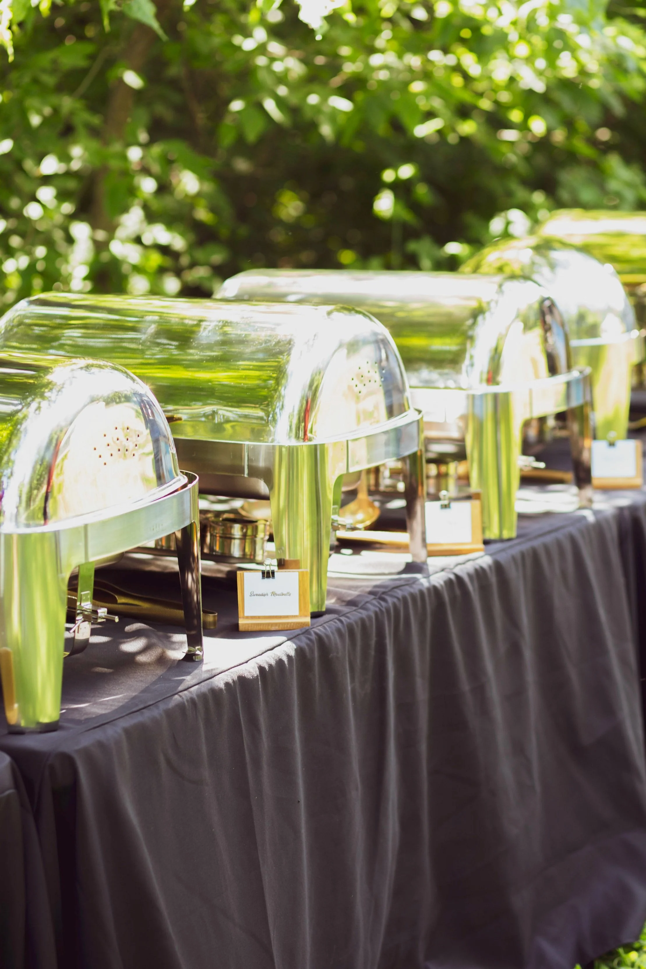 Plates, silverware, napkins, service utensils. Chafing dishes not included